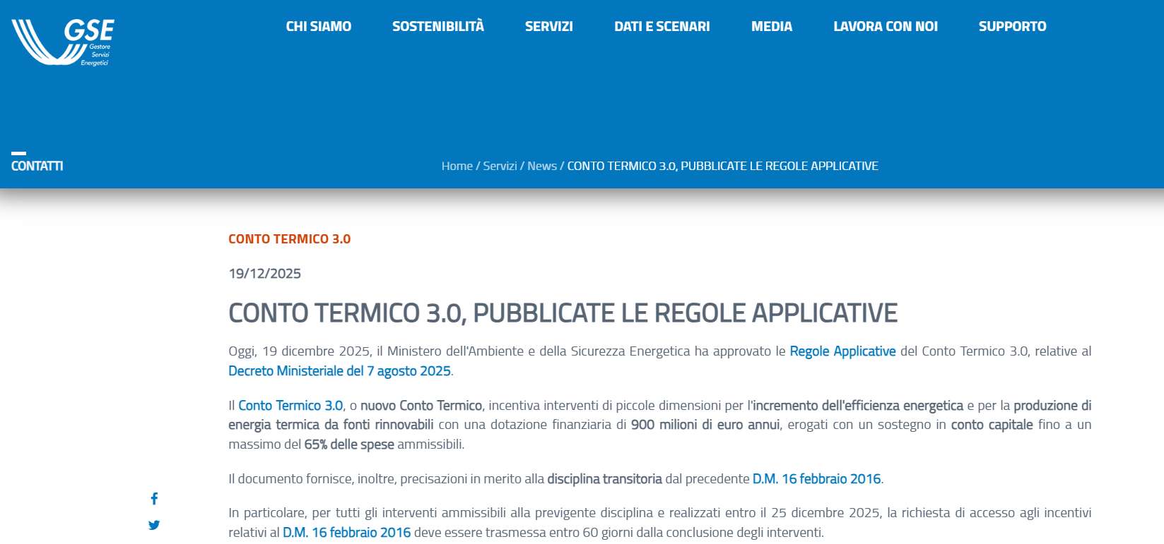 Conto Termico 3.0: Pubblicate le regole applicative da parte del GSE